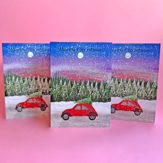 Red Car Christmas Card, Acrylic Painting Christmas Card