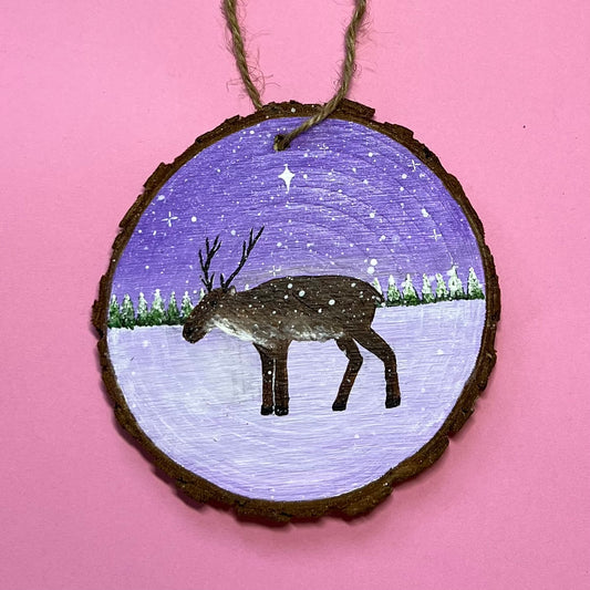 Reindeer Christmas Decoration, Hanging Wood Slice