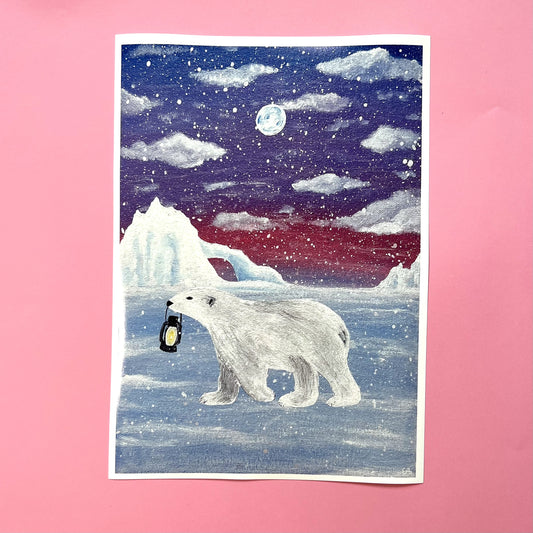Polar Bear Christmas Decoration, Hanging Wood Slice