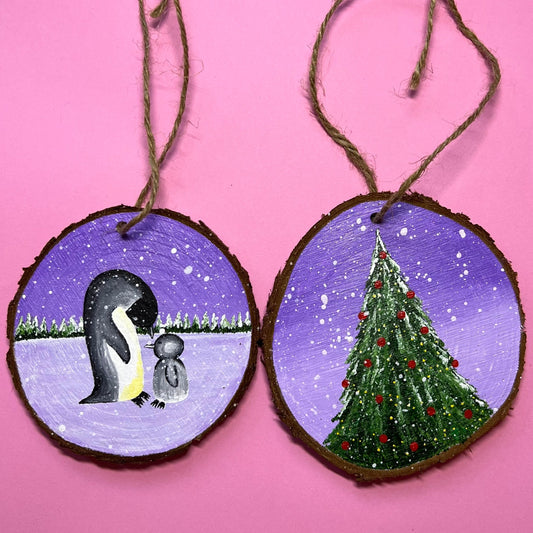 Penguin Christmas Bundle, Wood Slice, Christmas Card, Button Badge & Sticker