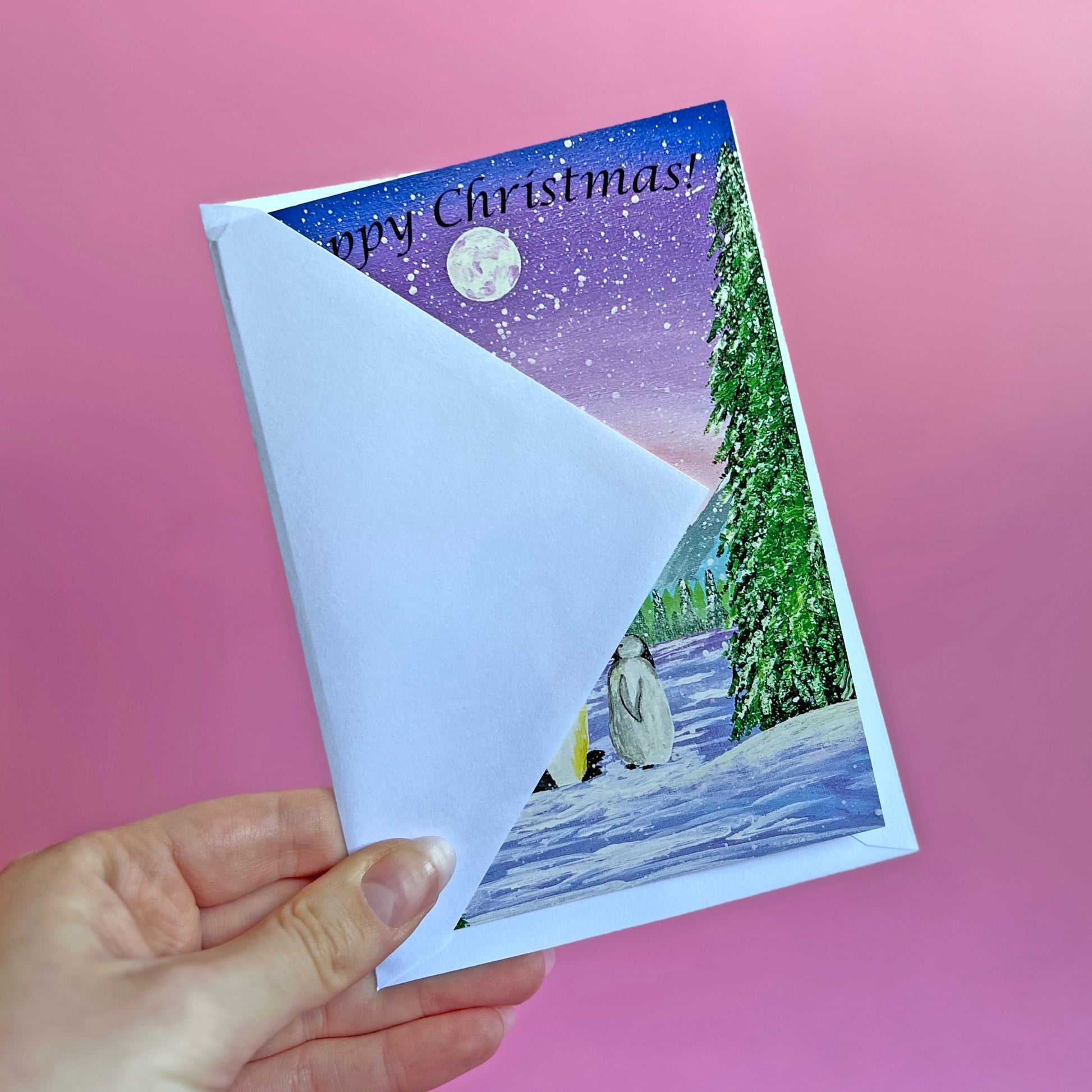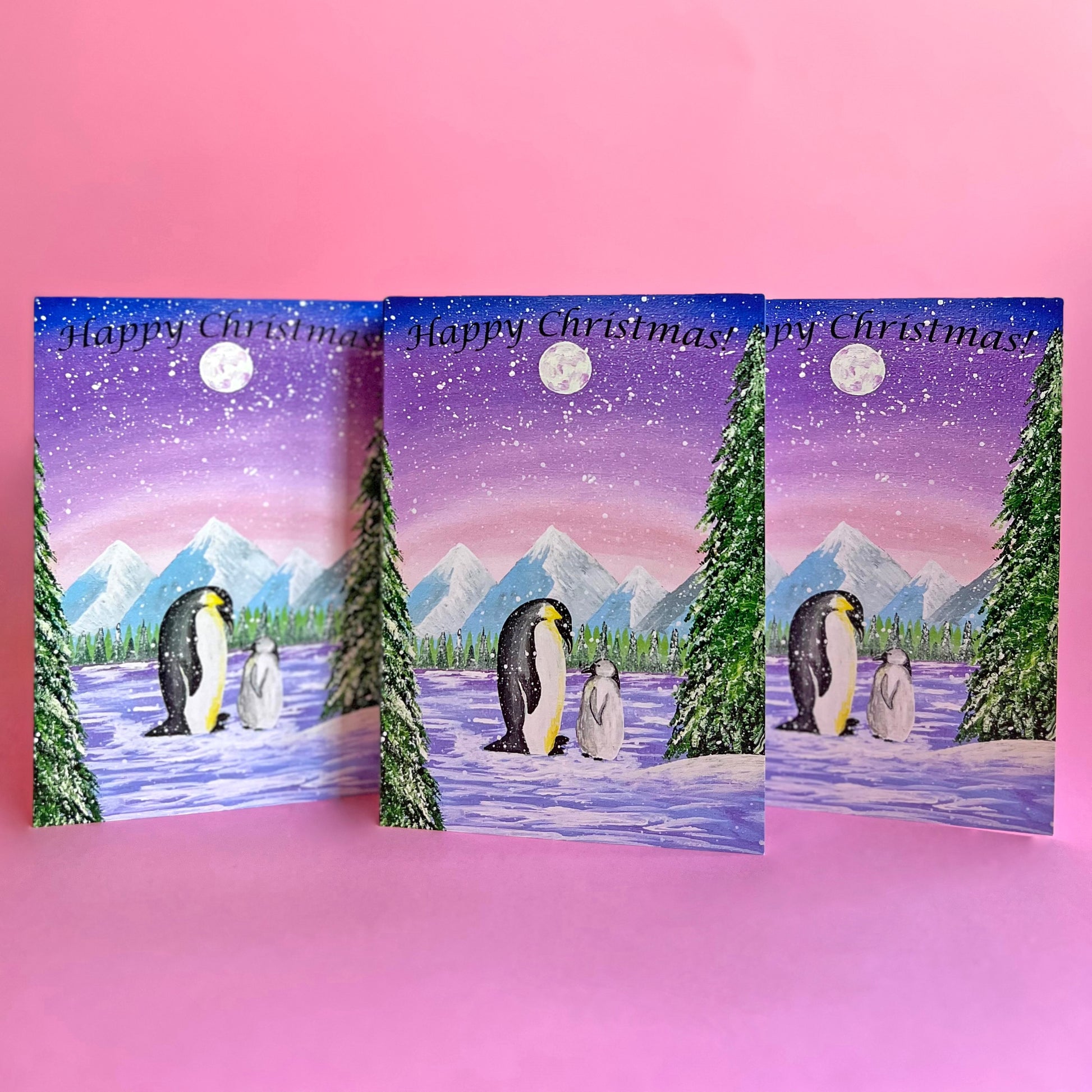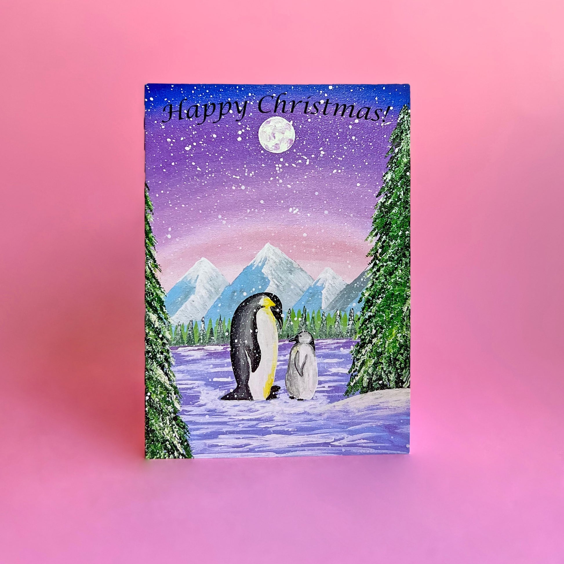 Penguin Christmas Card, Acrylic Painting Christmas Card