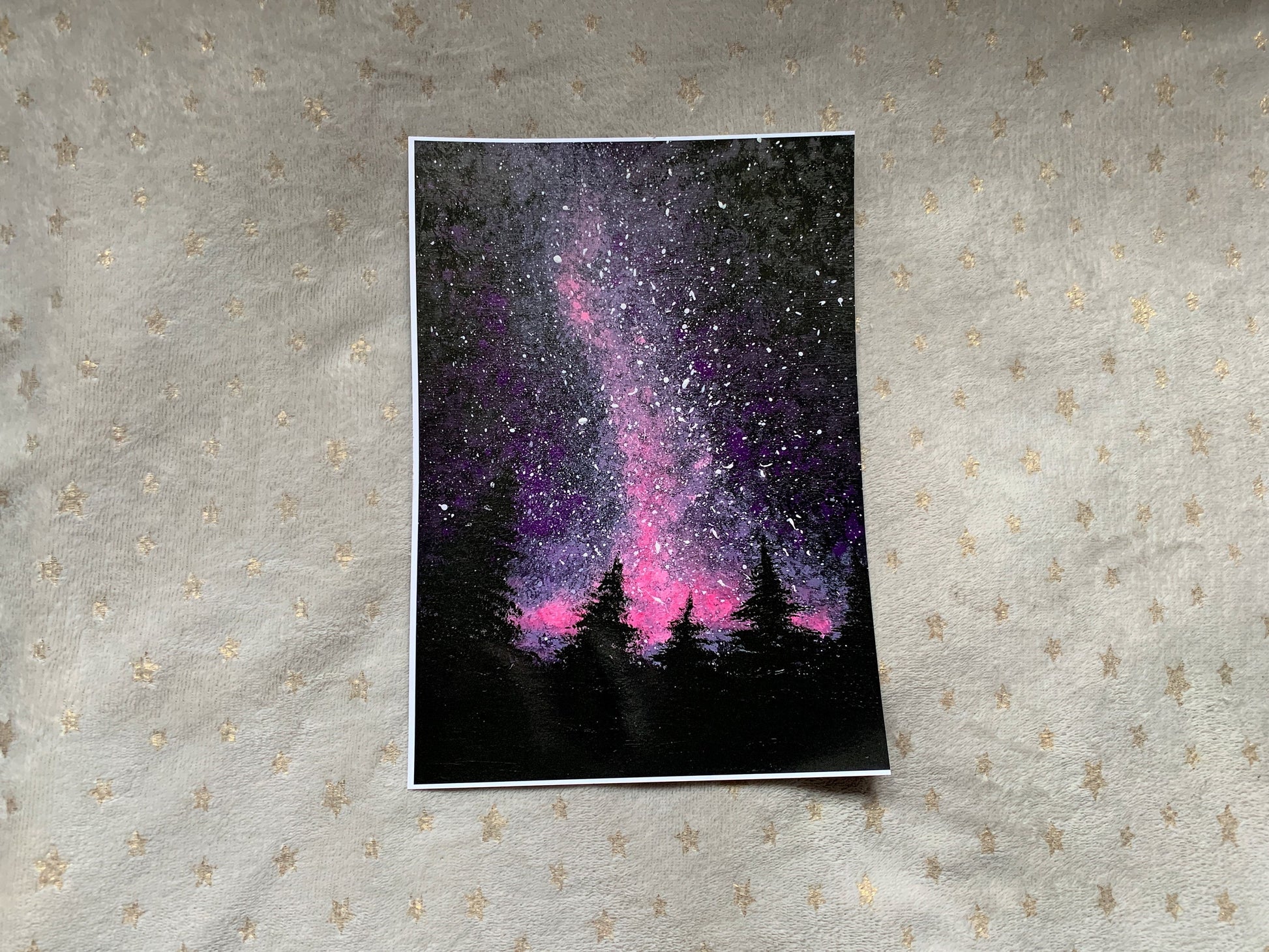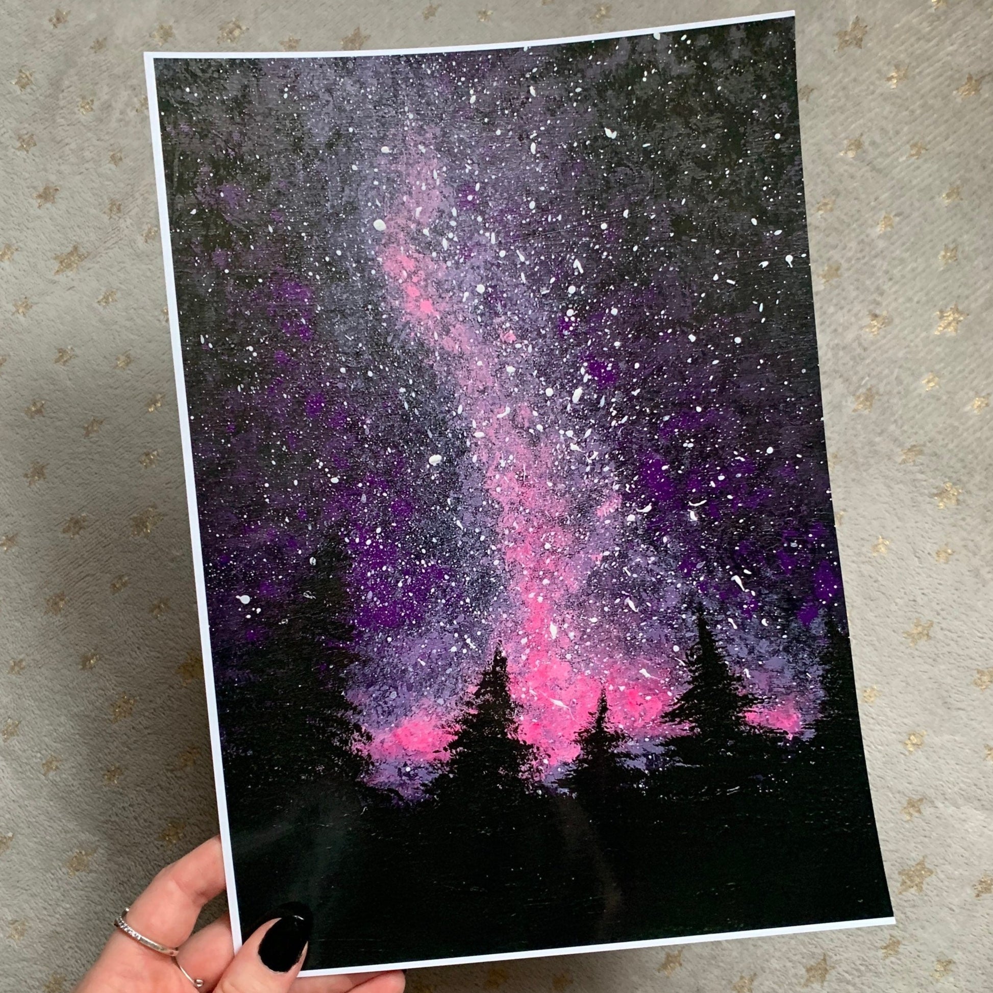 Pink Galaxy Painting by EmAttemptsArt, unframed art print on fine art paper.