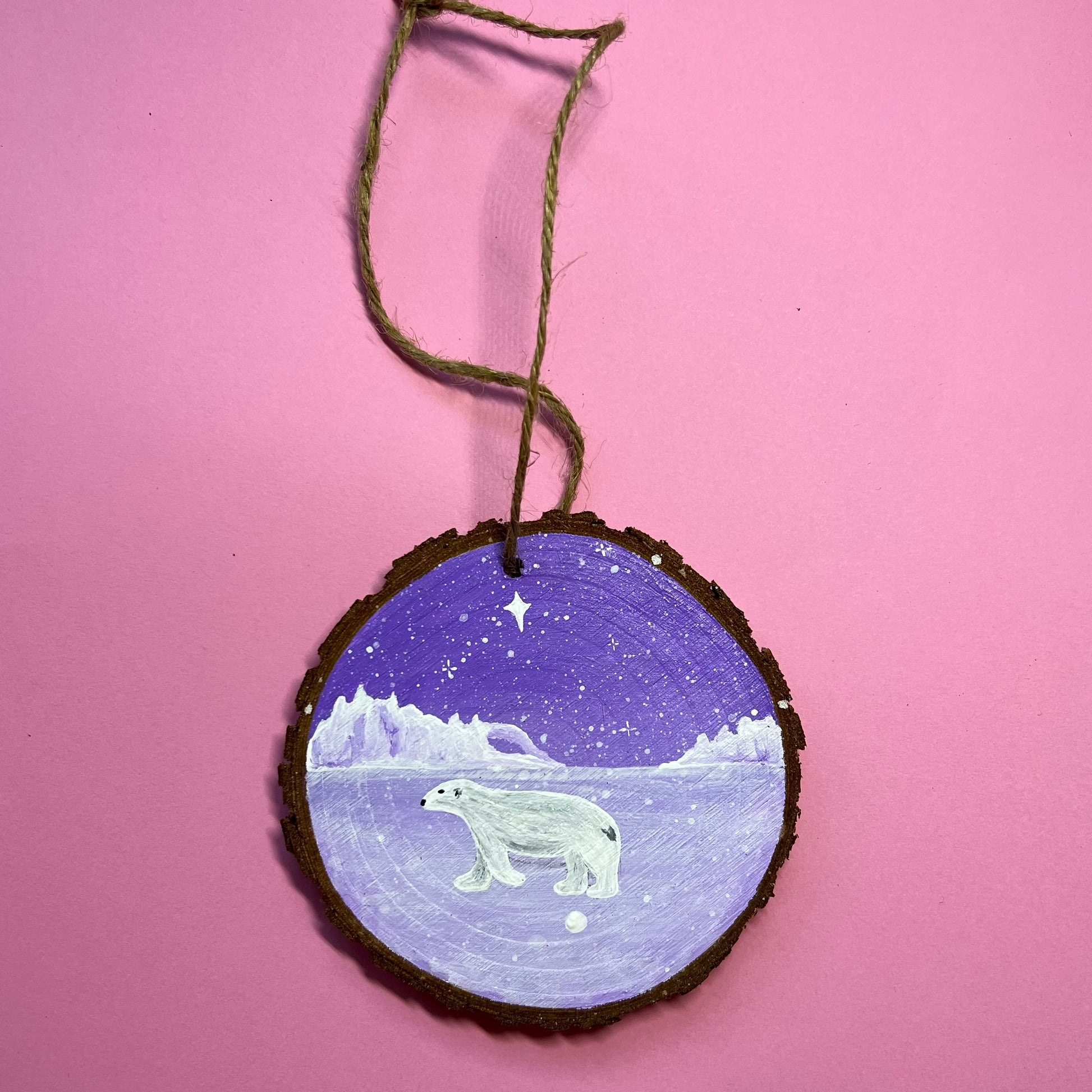 Polar Bear Christmas Decoration, hand painted by EmAttemptsArt.