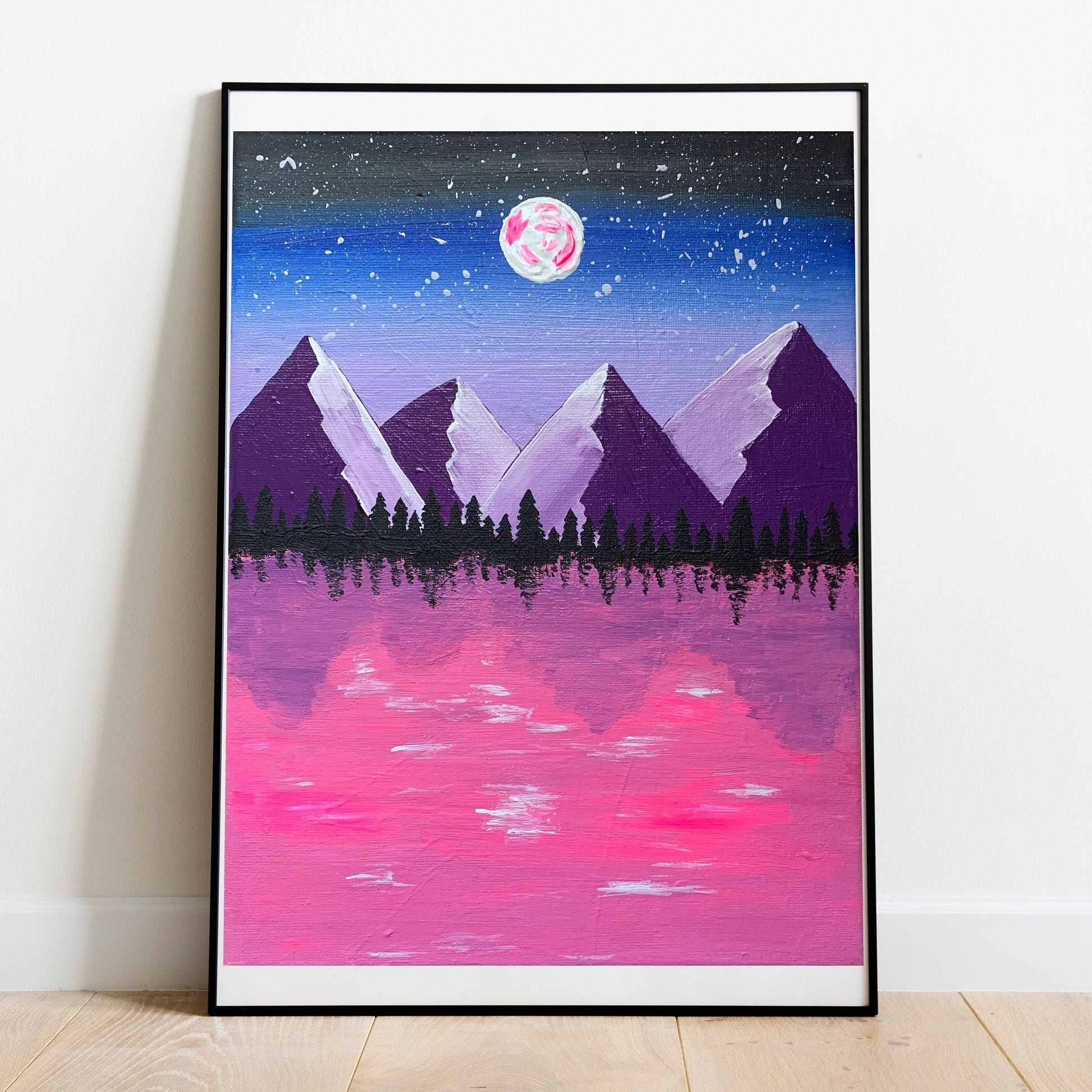 Pink and Purple Mountain Abstract Painting by EmAttemptsArt on unframed art prints.